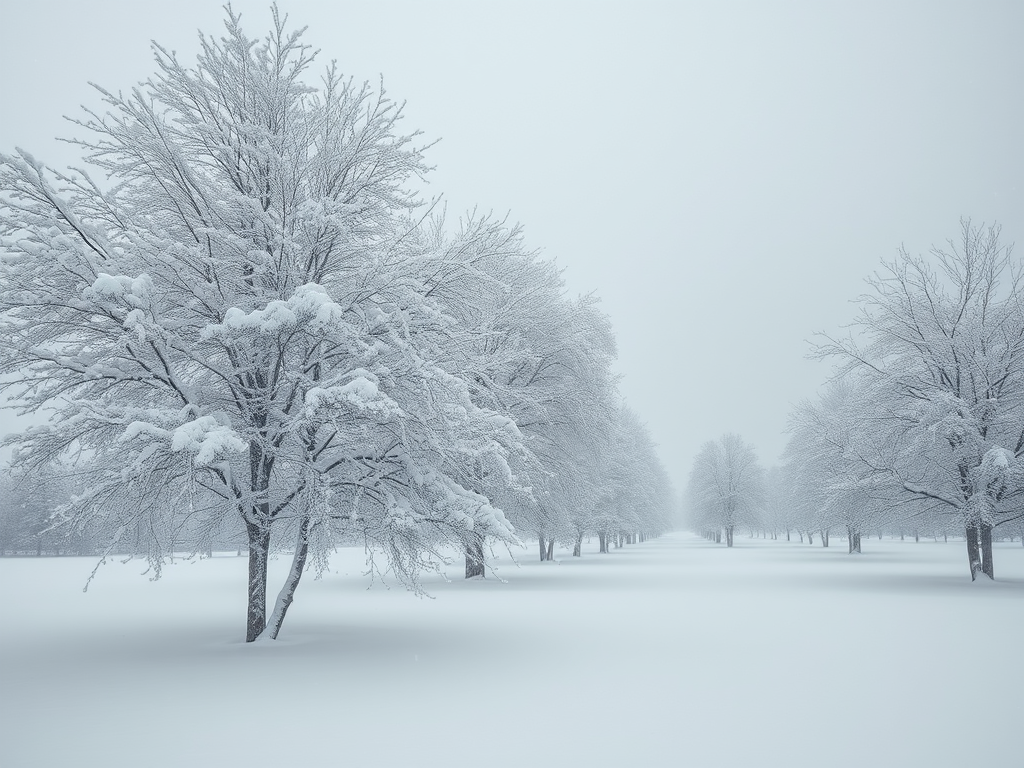 منظرهای از یک منطقه برفی با درختان پوشیده از برف.