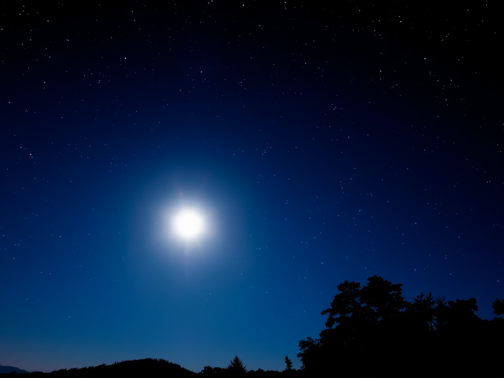 تصویری از یک منظره طبیعی در شب با ستارهها و ماه روشن.